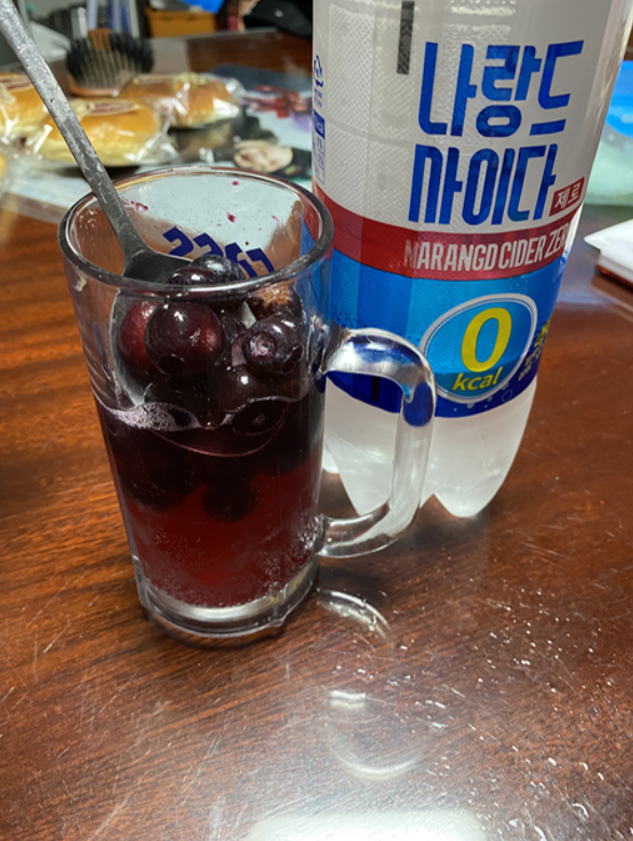 제로 사이다라서 이게 맛이 있을까 생각할 수 있는데, 블루 베리 자체가 지닌 새콤하면서 단 맛이 제로 사이다랑 궁합이 잘 맞는 편이라서 사이다 마시면서 블루베리를 으깨서 먹으면 상큼하면서 달달한 맛이 일품입니다.