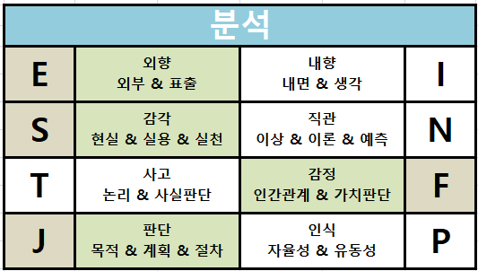 MBTI 기준으로 총 4개의 유형으로 나눠지는데요