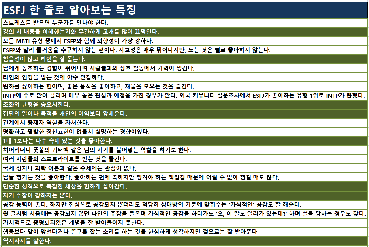 - ESFJ 한줄 평가