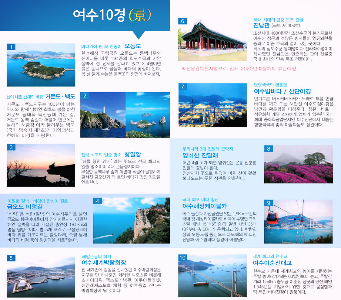 여수에서 가장 사랑 받는 관광 명소 10선입니다