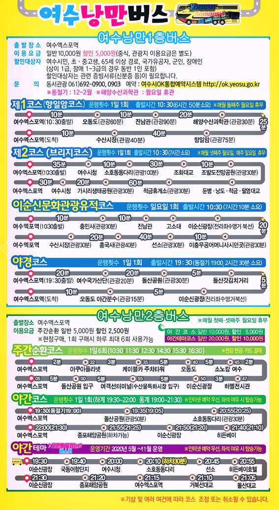 일단 여수 지도에 앞서서, 여수 여행을 뚜벅으로 하시는 분들을 위한 여수 시내 버스 정보입니다.