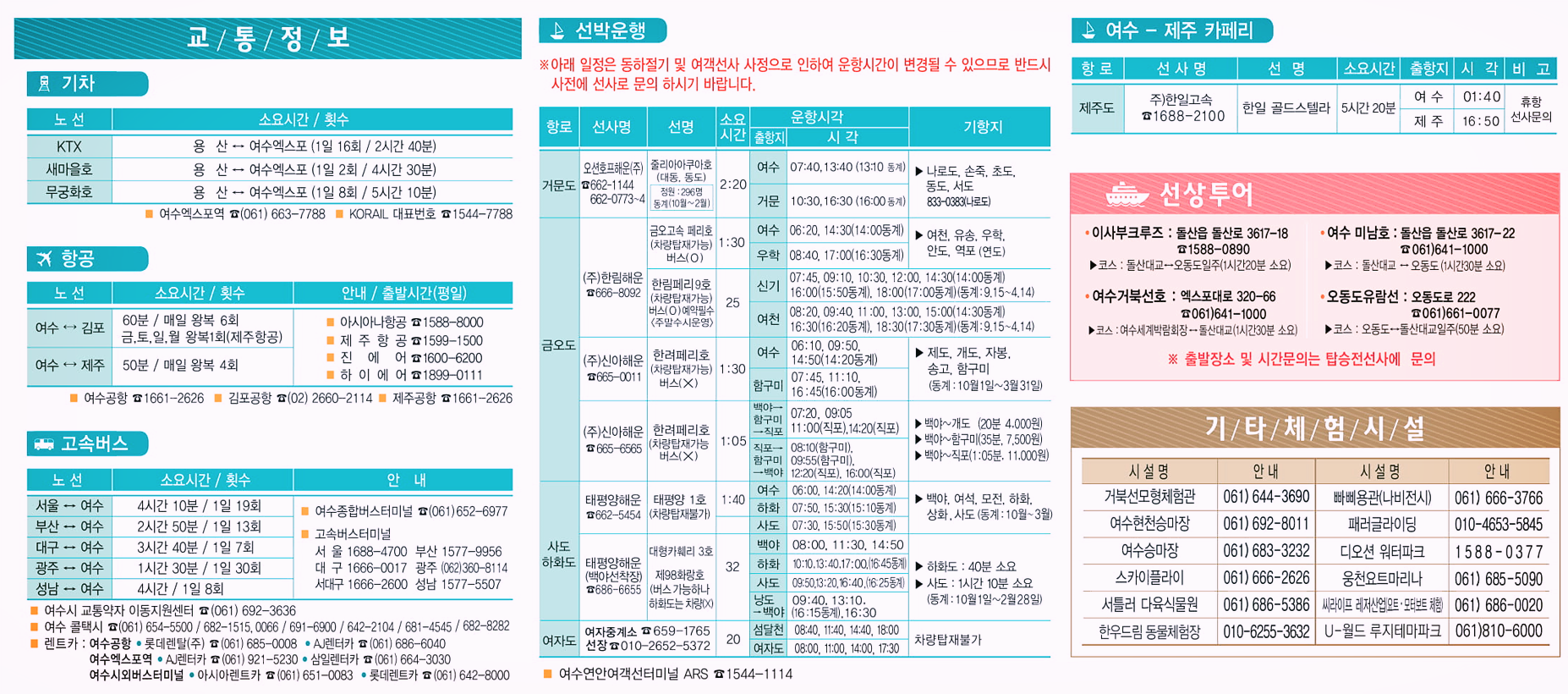 여수 시청 관광안내 전화 번호 : 1899 - 2012