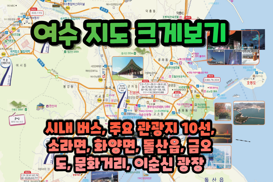 이러한 여수의 지도를 큼지막하게 모바일로 보기 좋게 정리해봤습니다.