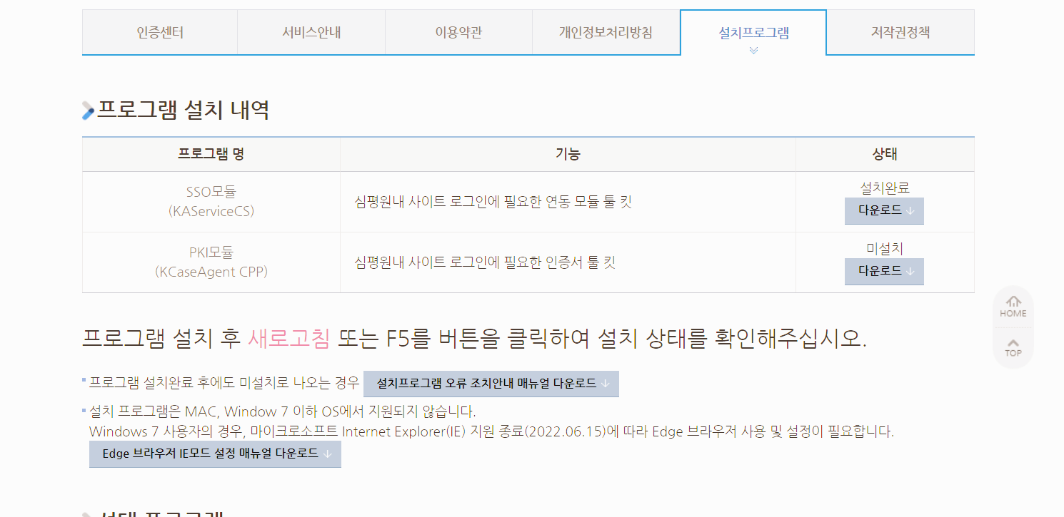 아무튼 해당 프로그램을 지우고 공동인증서로 로그인을 하면 문제없이 들어가지는데, 2차로 아래와 같이
