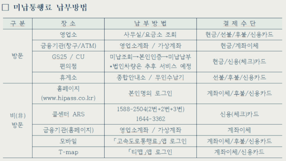 하이패스 미납 요금 내는 방법