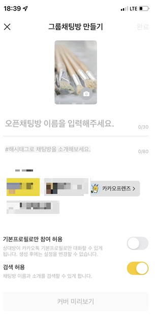 (내가 만든 오픈 채팅방이 검색하면 다른 사람들 눈에 보임)