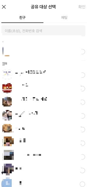 내 친구 카톡 옆에 동그라미를 클릭하고 공유하기를 누르면