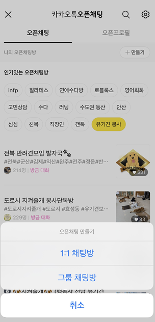 저의 경우 익명 프로필로 오픈 카톡 챗방을 개설해봤습니다.