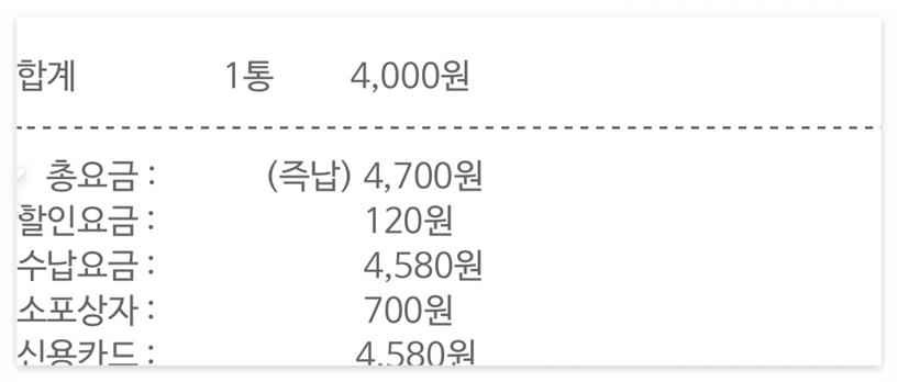 혹시라도 현장 결제를 하신다면 우체국 택배 아저씨가 오셨을 때 내가 꼭 집에 있어야 해서 조금은 불편할 수 있습니다.