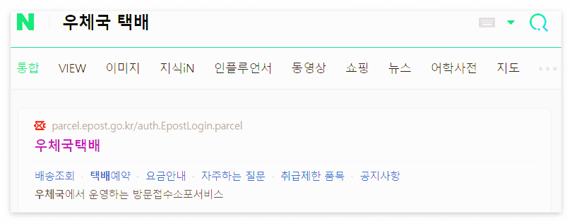 포털 사이트에서 우체국 택배를 검색하면 아래와 같이 바로 나오게 됩니다