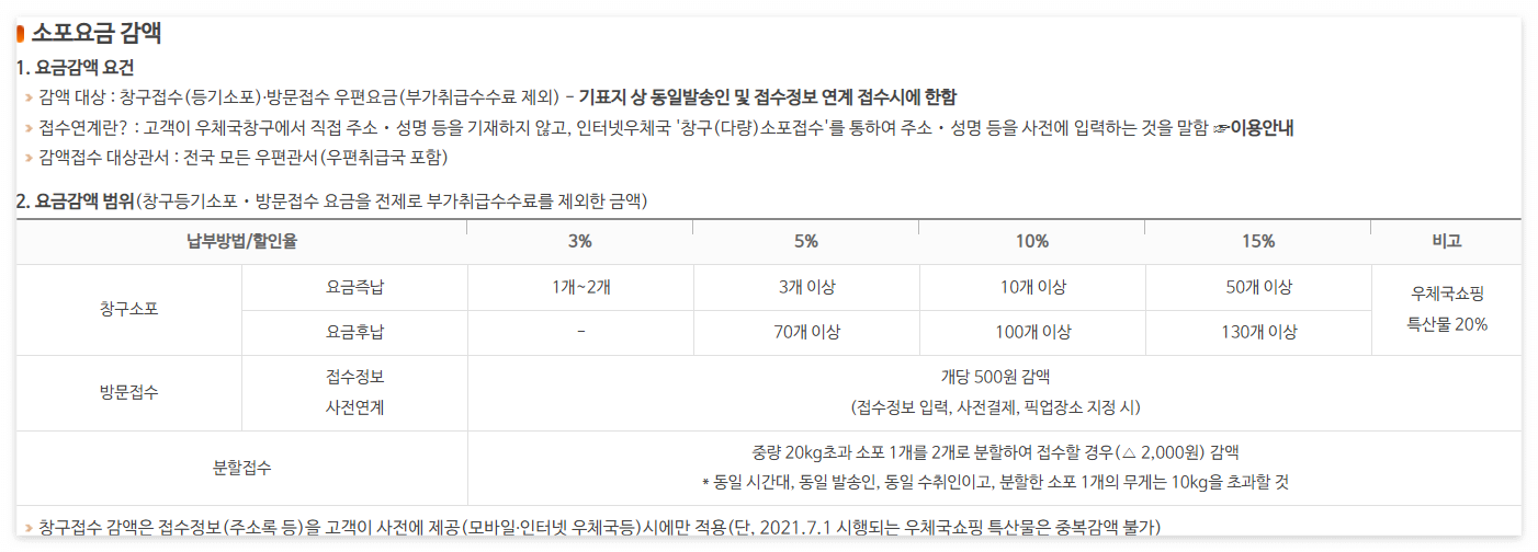 우체국 택배 아저씨가 오셔서 수거해가는 택배 관련해서 할인해주는 사항입니다.