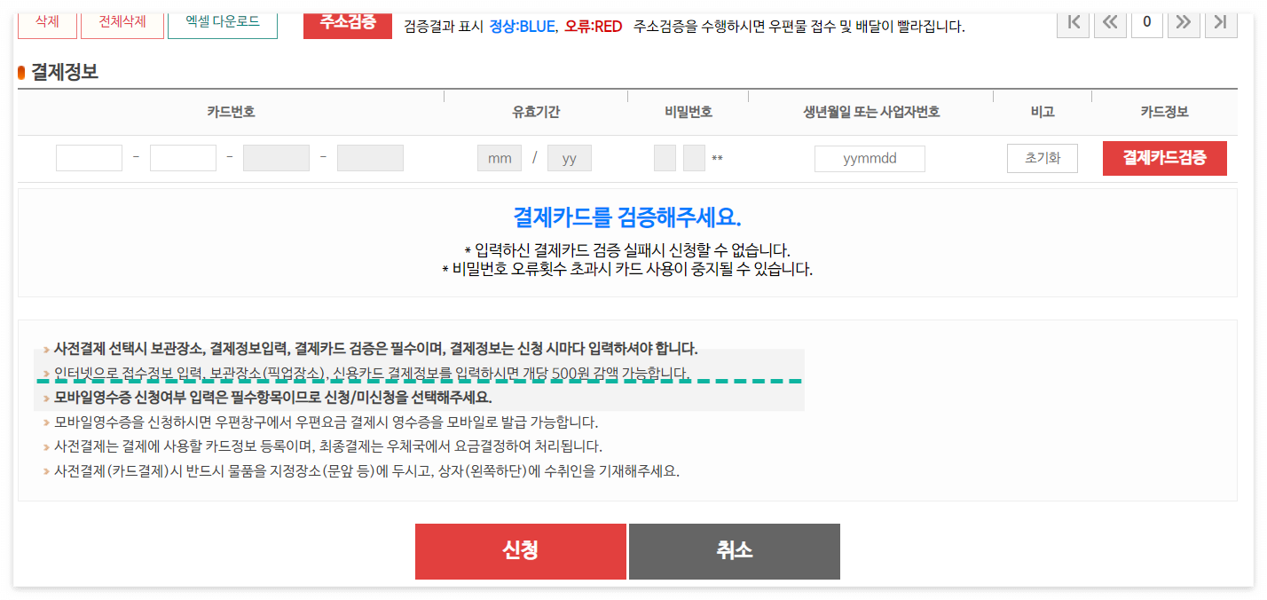 사전 결제를 해놓으면 좋은 점이 집 앞에 놔둬도 우체국 택배 아저씨가 가져간다는 점입니다.