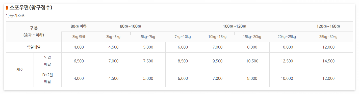 2. 창구접수 (내가 직접 우체국에 가서 택배 보내는 비용)
