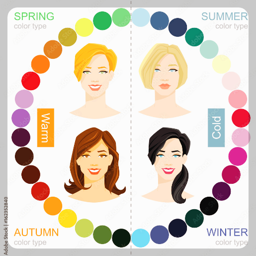 윈터가 가장 쿨톤이며 썸머가 가장 웜톤으로 보면 되겠습니다.