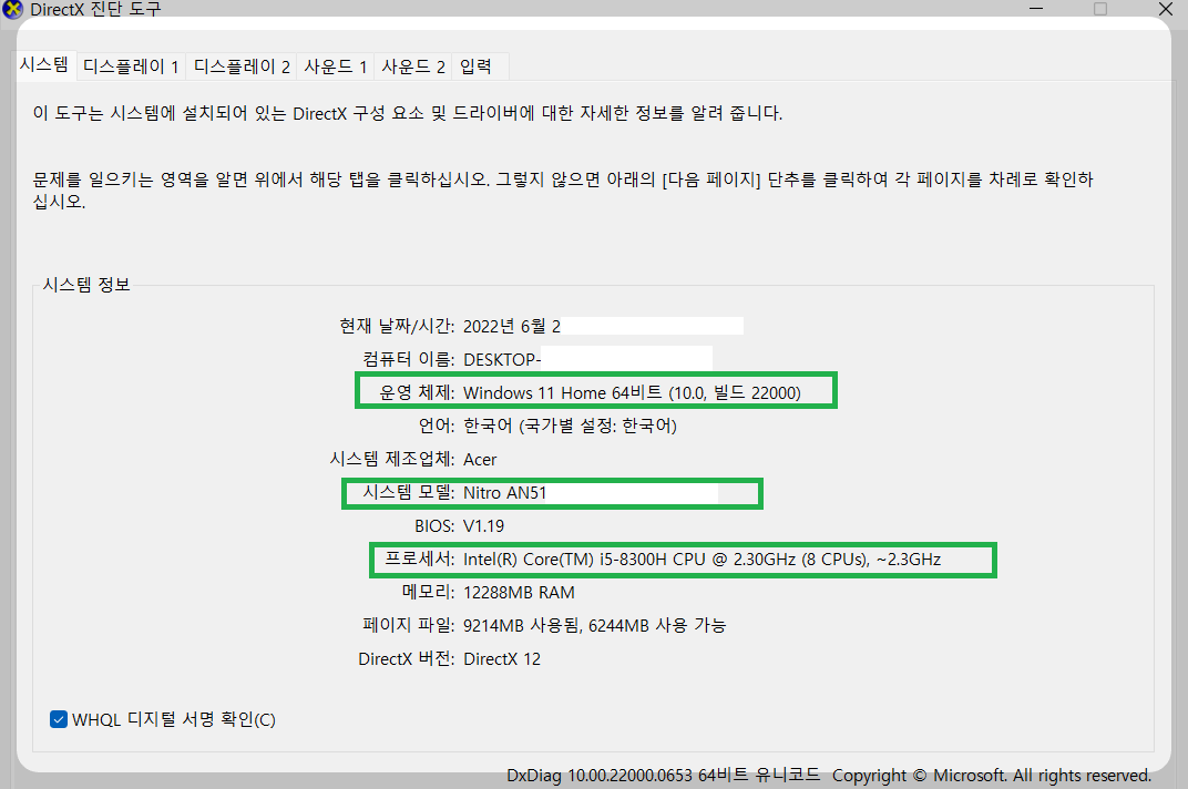 30초면 내 컴퓨터 사양 (그래픽 카드, 램 크기, CPU, 비트, 윈도우 버전, 사운드 카드 등등)