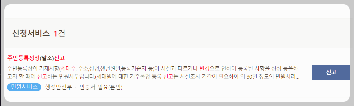 (2) 검색어 입력창에서 주민등록정정 검색