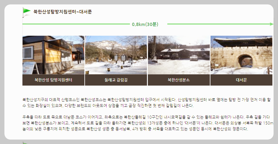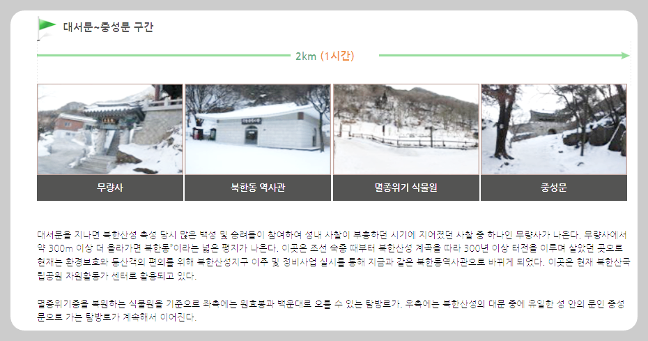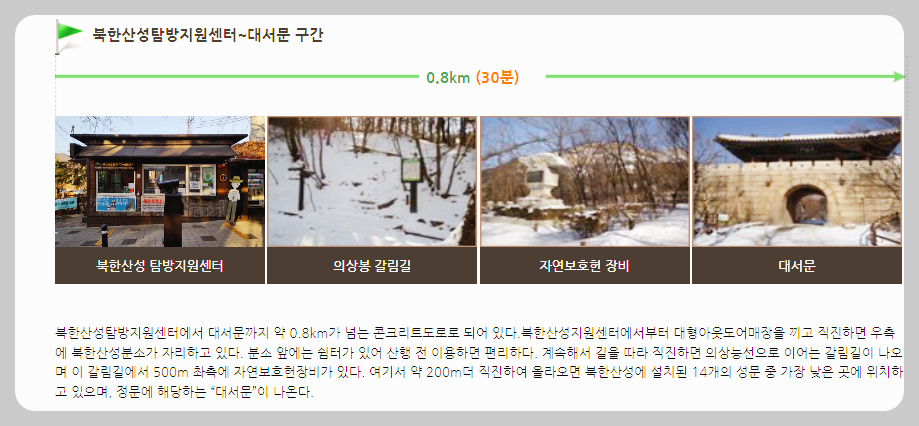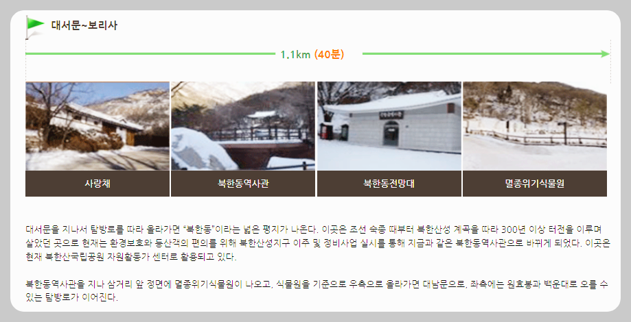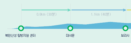 북한산성 탐방지역센터 -> 대서문 -> 보리사까지 가는 코스입니다