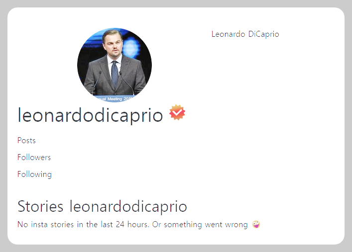 레오나르도 디카프리오의 스토리를 검색해봤는데 아쉽게도 검색이 되지 않습니다