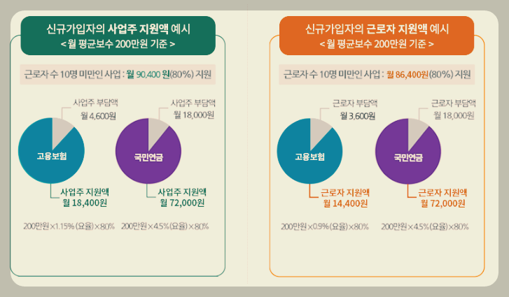 신규 가입 근로자 조건을 충족하며 사업장의 규모가 10인 미만일 경우 정부에서 지원해주는