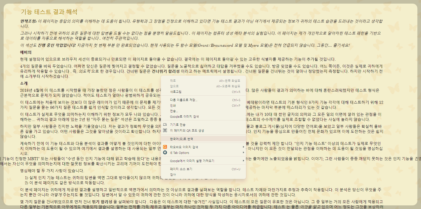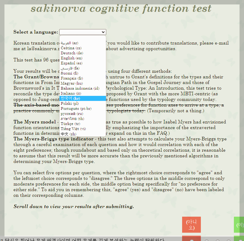 이전에 올렸던 MBTI 테스트 중에서 가장 정확하다고 알려졌던 Sakinorva 를 올렸었는데요