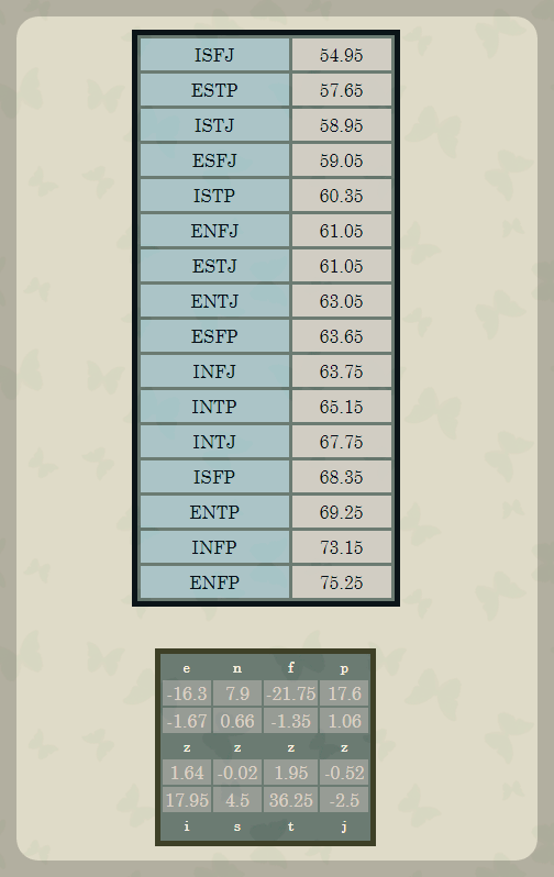 보시면 ISFJ는 54.95로 저와는 가장 다른 타입의 유형이며