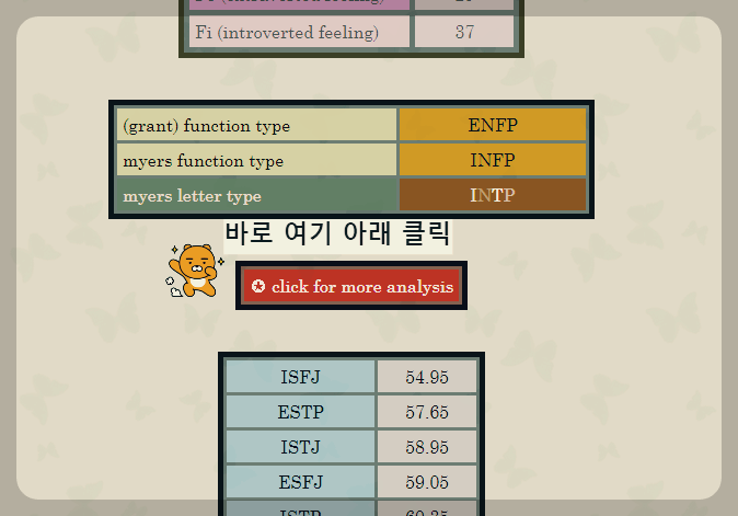 저의 경우 INTP이기 때문에 INTP로 결과를 보자면 아래와 같습니다