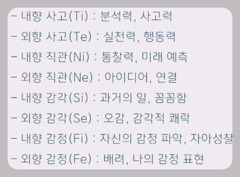 INTP의 경우 주기능은 Ti이며 TI의 경우 정확하게 분석하고 정립하여 근원을 찾으려는 기능 (분석)에 특화되어있음을 알 수 있습니다