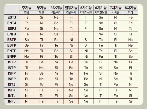 위에 나온 내 mbti 결과를 토대로 아래의 표에 대입해서 보는 것도 좋은 방법입니다