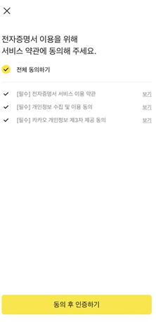 5. 전자증명서 이용을 위한 서비스 약관을 체크해줍니다