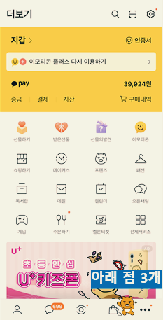 2. 카톡 가장 아래 부분에 점 3개가 있는데 그걸 눌러주도록 합니다