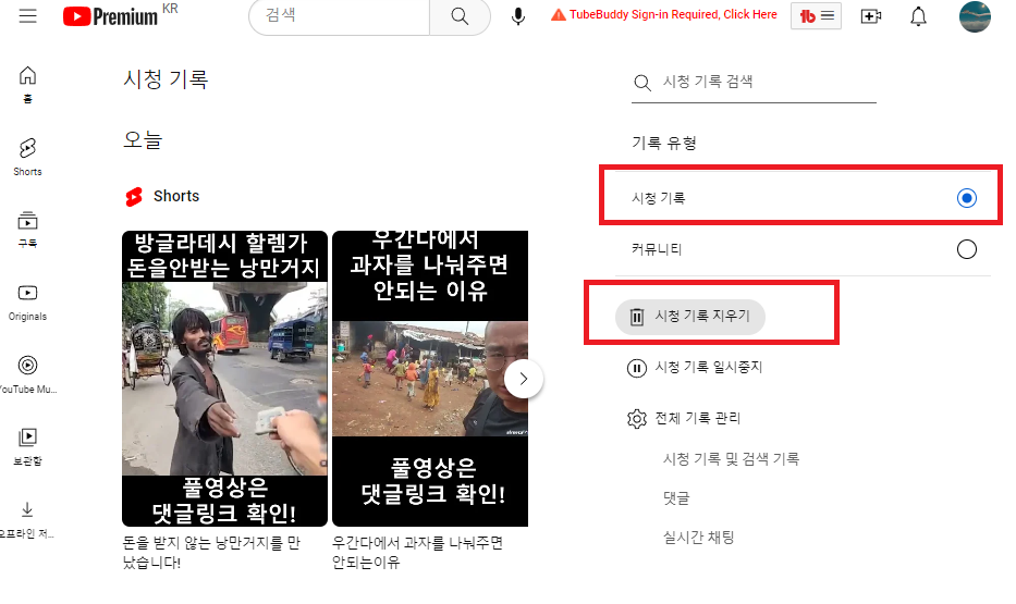 매우 간단하고 쉽게 유튜브 시청 기록을 지울 수 있었습니다
