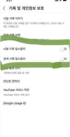 저는 검색 기록을 삭제하기 보다는, 시청 기록 일시중지 및 검색 기록 일시 중지를 해두었습니다