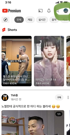일단 유튜브를 키고 오른쪽 상단에 있는 내 아이콘을 선택해서 눌러줍니다