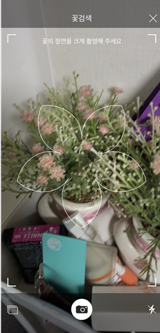그러면 아래와 같이 꽃 그림이 그려진 사진이 뜨는데, 이걸 꽃에 가까이 두고 사진을 찍으면 자동으로 검색이 됩니다
