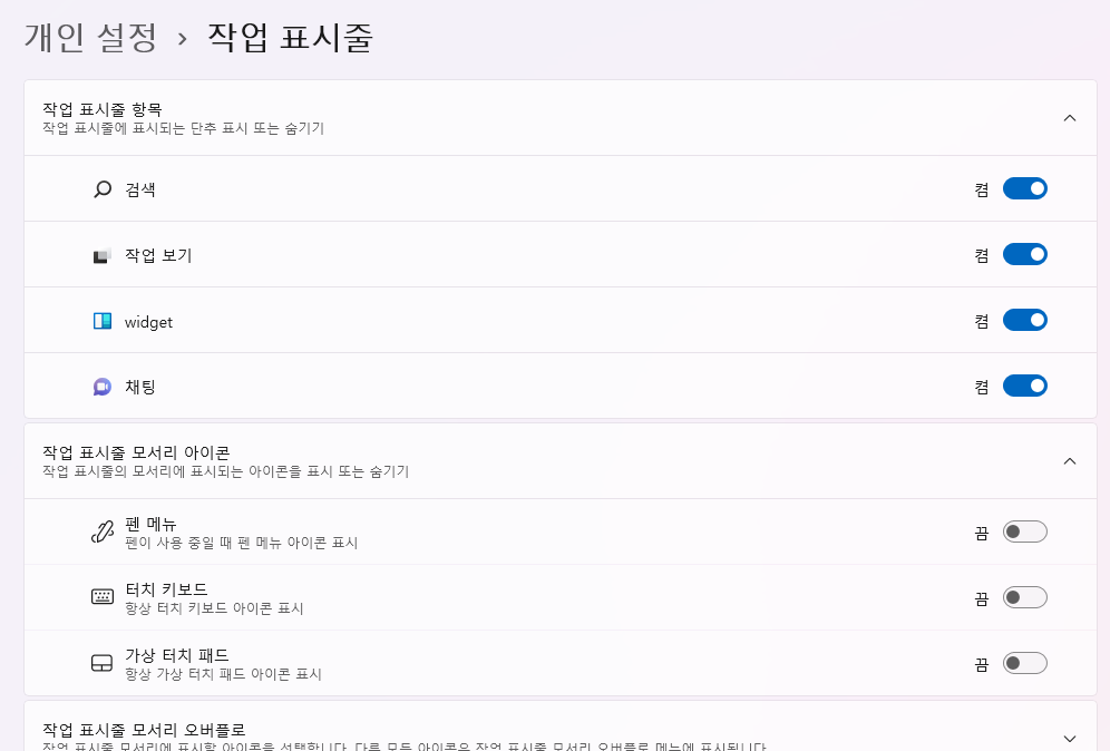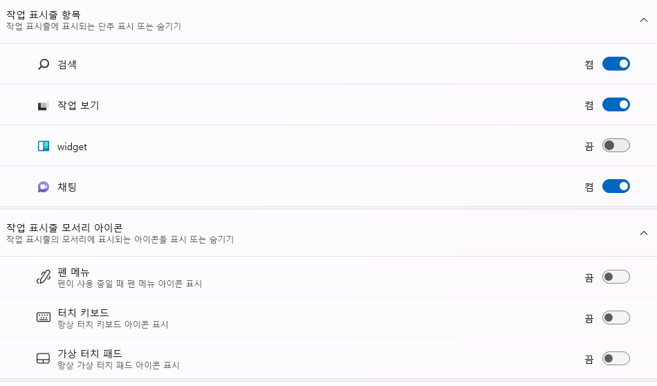 이러한 위젯을 끄고 켜는 방법은 다음과 같습니다