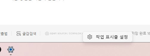 해당 표시줄을 클릭해주면 아래와 같이 작업 표시줄 메뉴들이 뜨게 됩니다