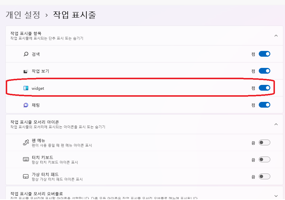 이러한 위젯을 끄고 켜는 방법은 다음과 같습니다