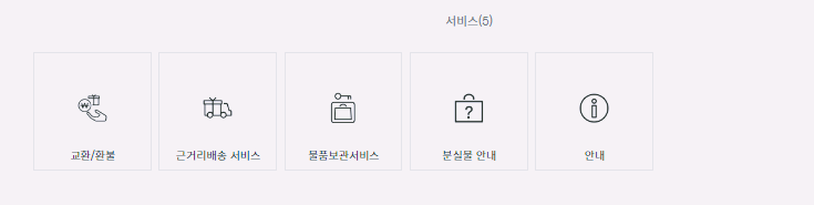 (물품 보관, 분실물. 교환/환불, 근거리 배송 서비스)