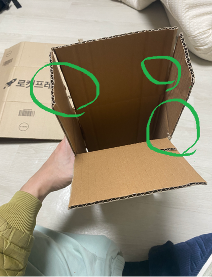 이걸 잘만 조립하면 되는데, 날개 부분 (택배 위 아래를 닫아주는 부분)을 임의로 잘라줘야 합니다