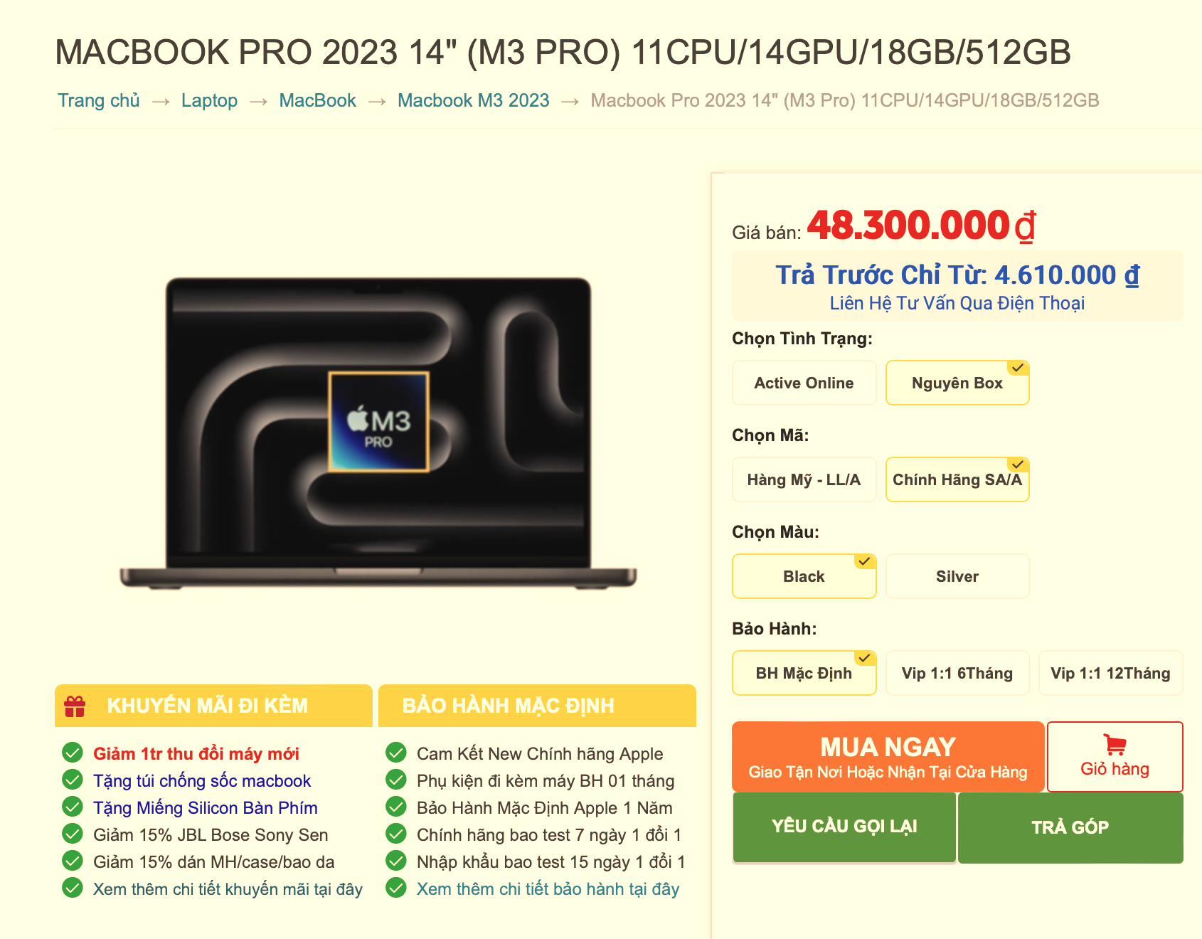 위에 옵션 중에서 nguyen box로 구매, chinh hang sa/a, 보험을 vip 1:1 12thang으로 가장 비싼 옵션들로만 고를 경우에