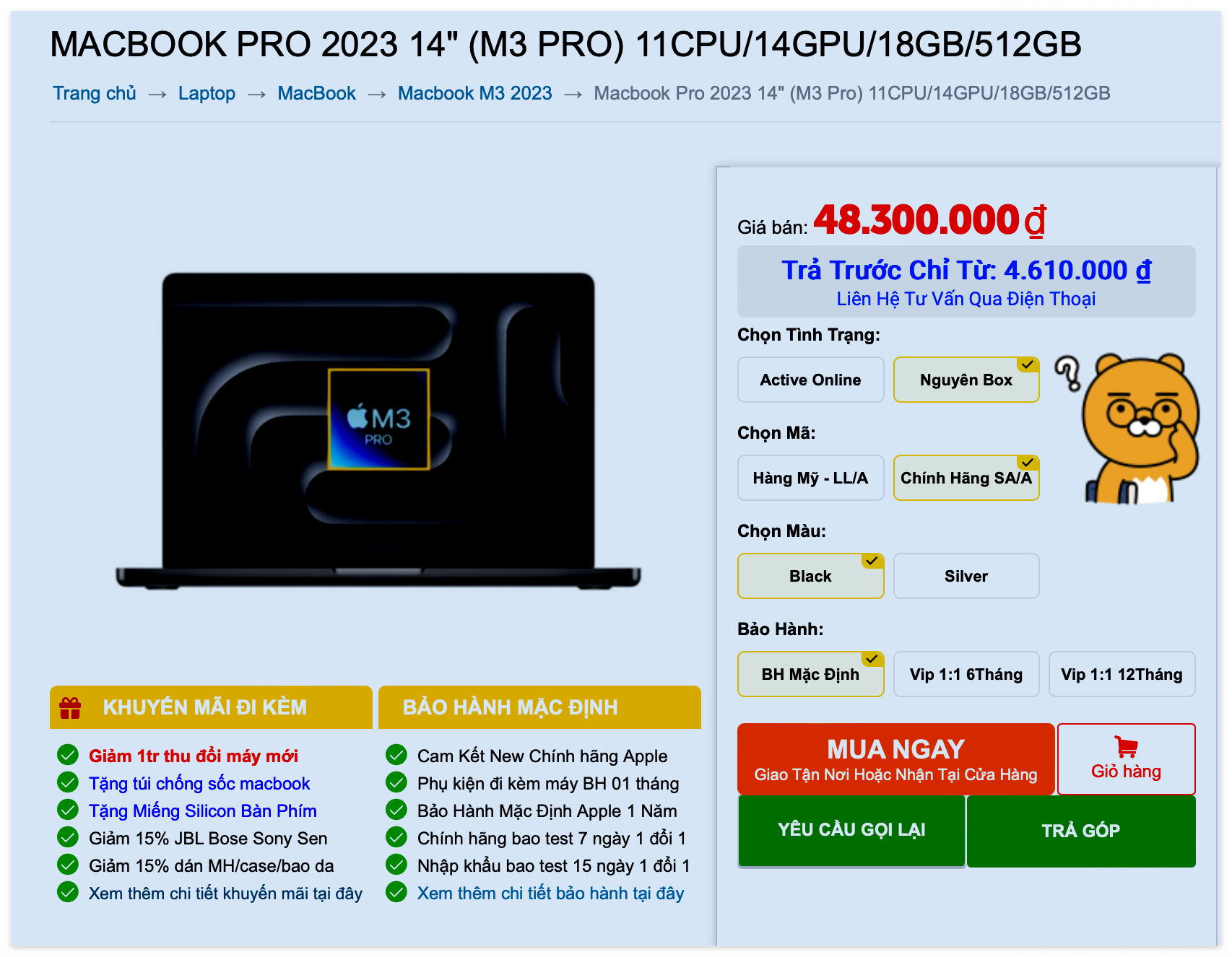 | 베트남 호치민 아이폰, 맥북 싸게 사기 (맥북 M3 pro 구매 후기) (0) | 2024.03.04 |