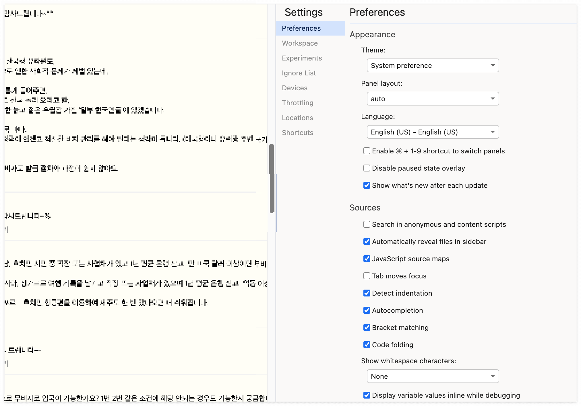 (Preferences 하단 쪽에 저희가 찾는 기능이 있습니다)
