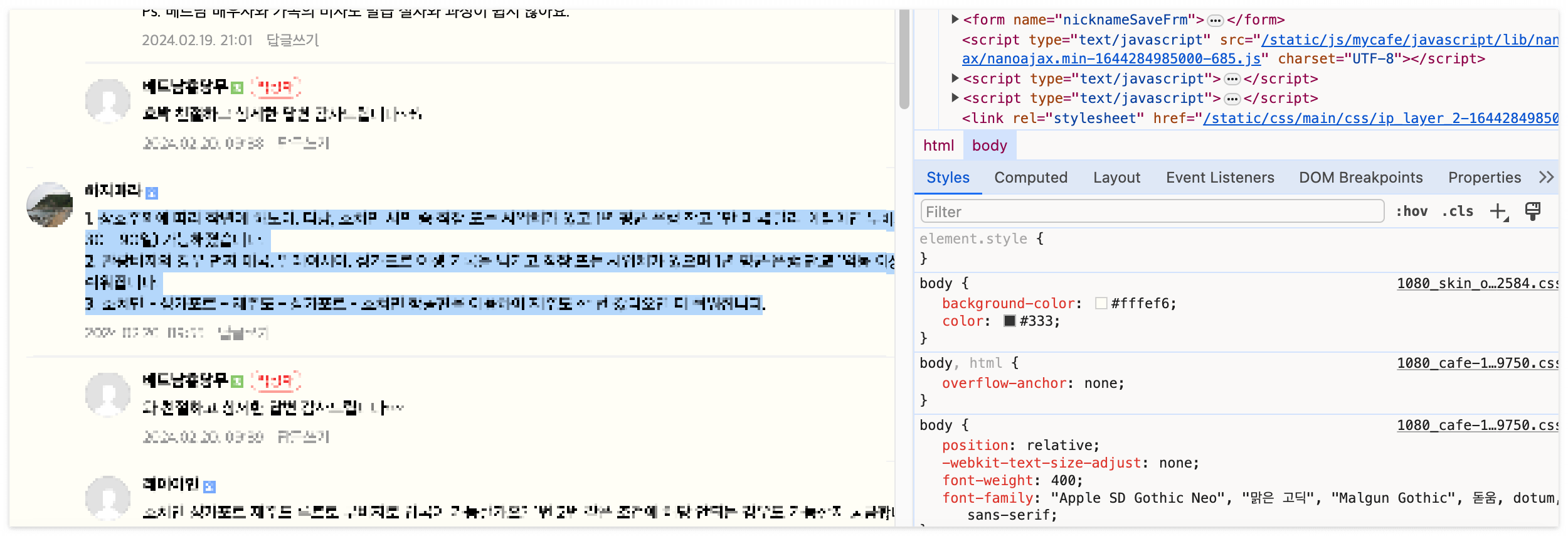 글을 원하는 네이버 카페 혹은 블로그에서 F12 누르고, F1 누르고 아래로 쭉 내려가주면