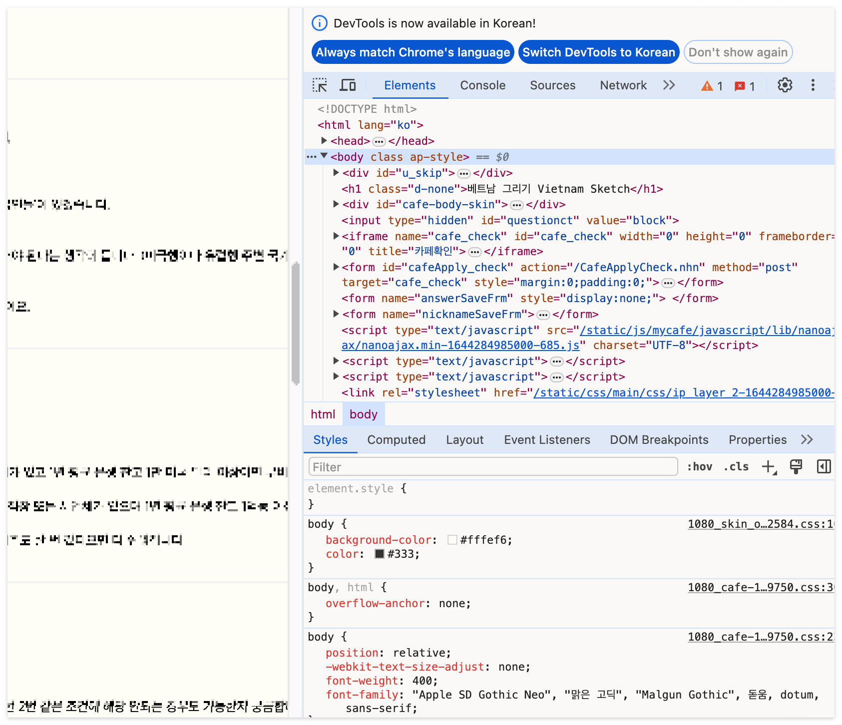 글을 원하는 네이버 카페 혹은 블로그에서 F12 누르고, F1 누르고 아래로 쭉 내려가주면