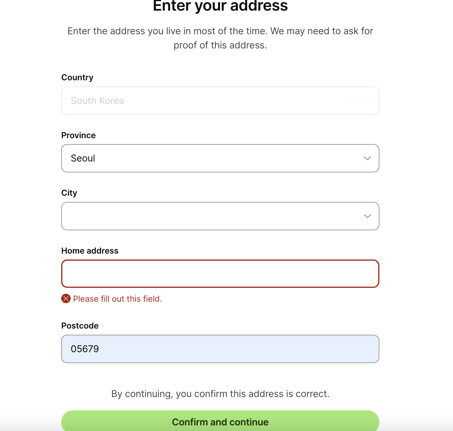 일단 South korea로 입력해줍니다.