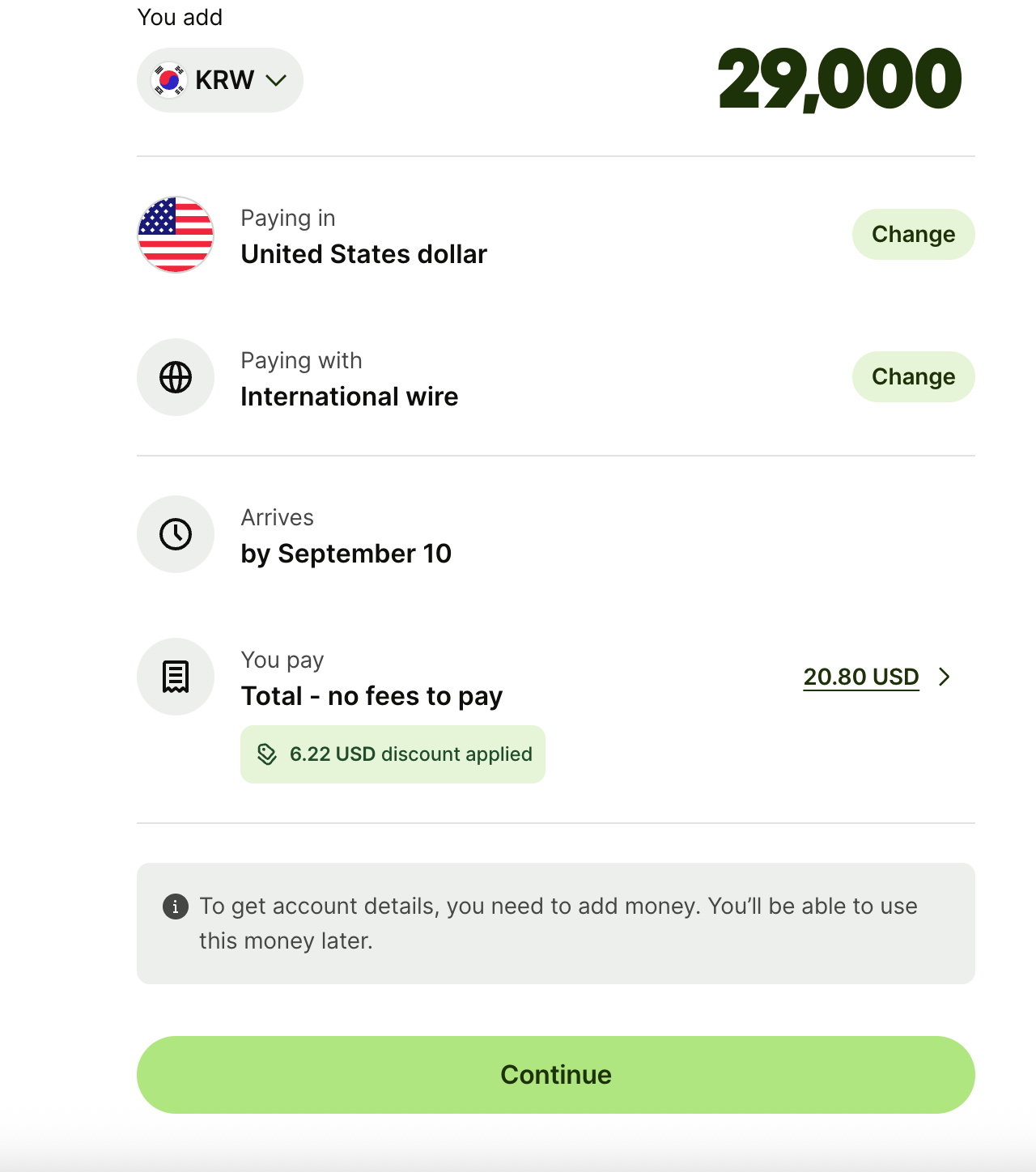 일단 Receive money from anywhere 이걸로 Get started를 선택해줍니다.