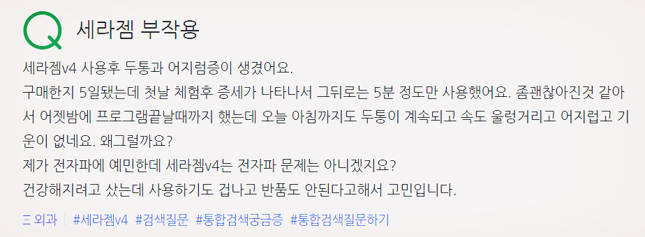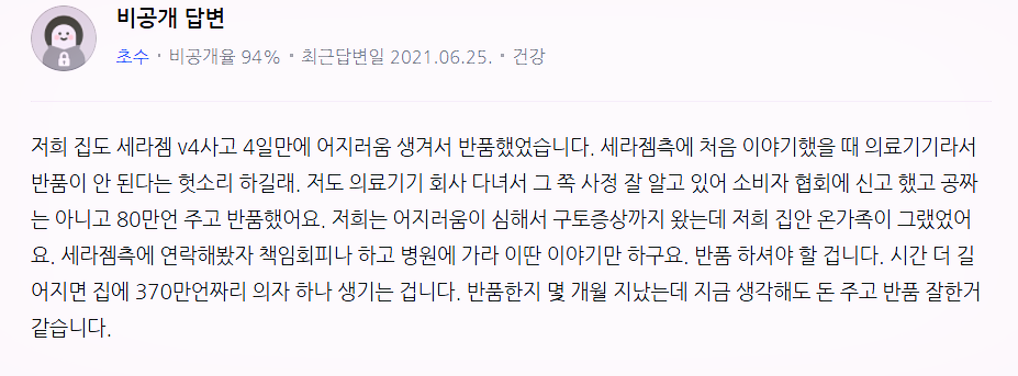 세라젬의 경우 현재 시중에 판매되는 제품이기 때문에 부작용은 따로 없어보였습니다